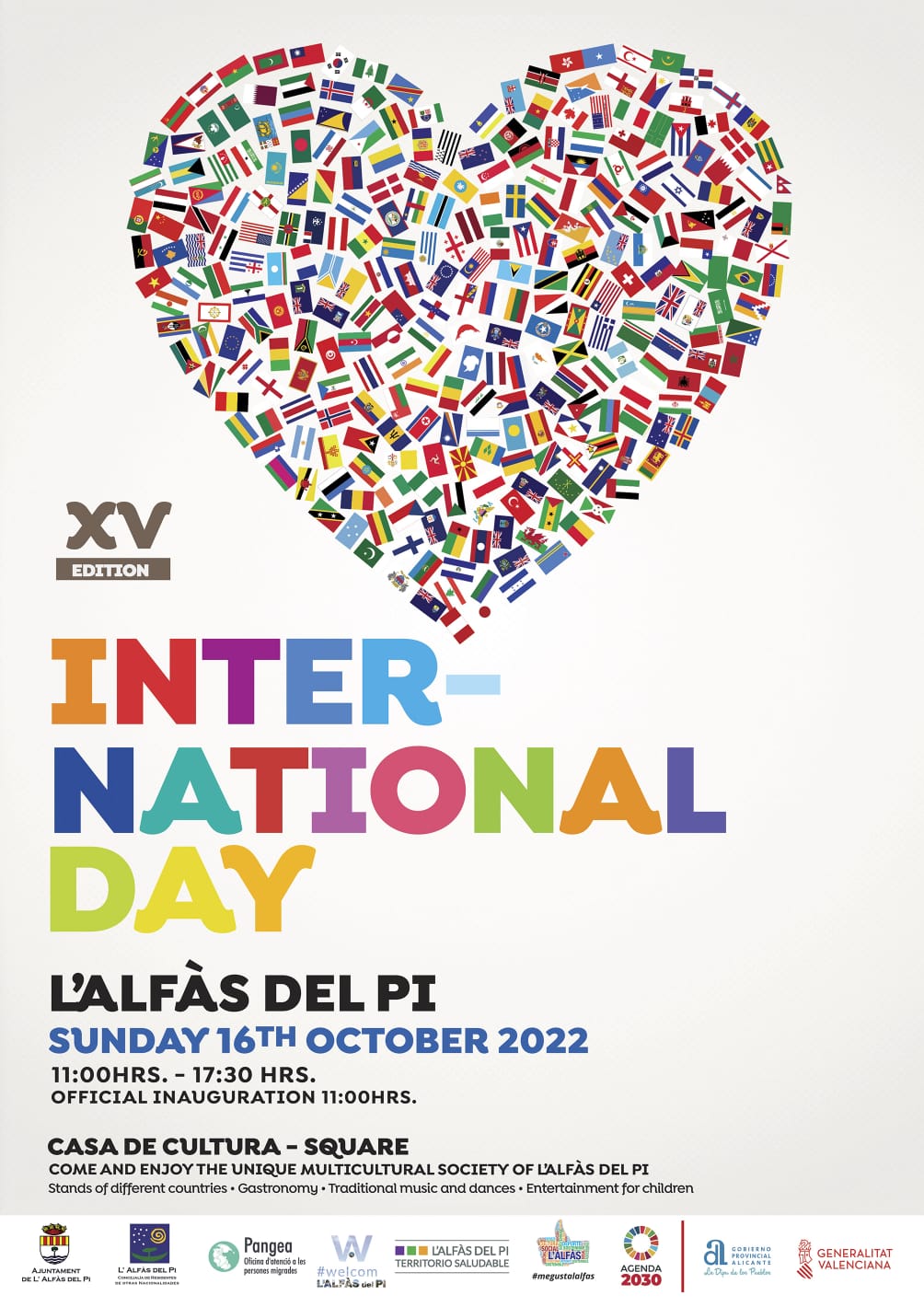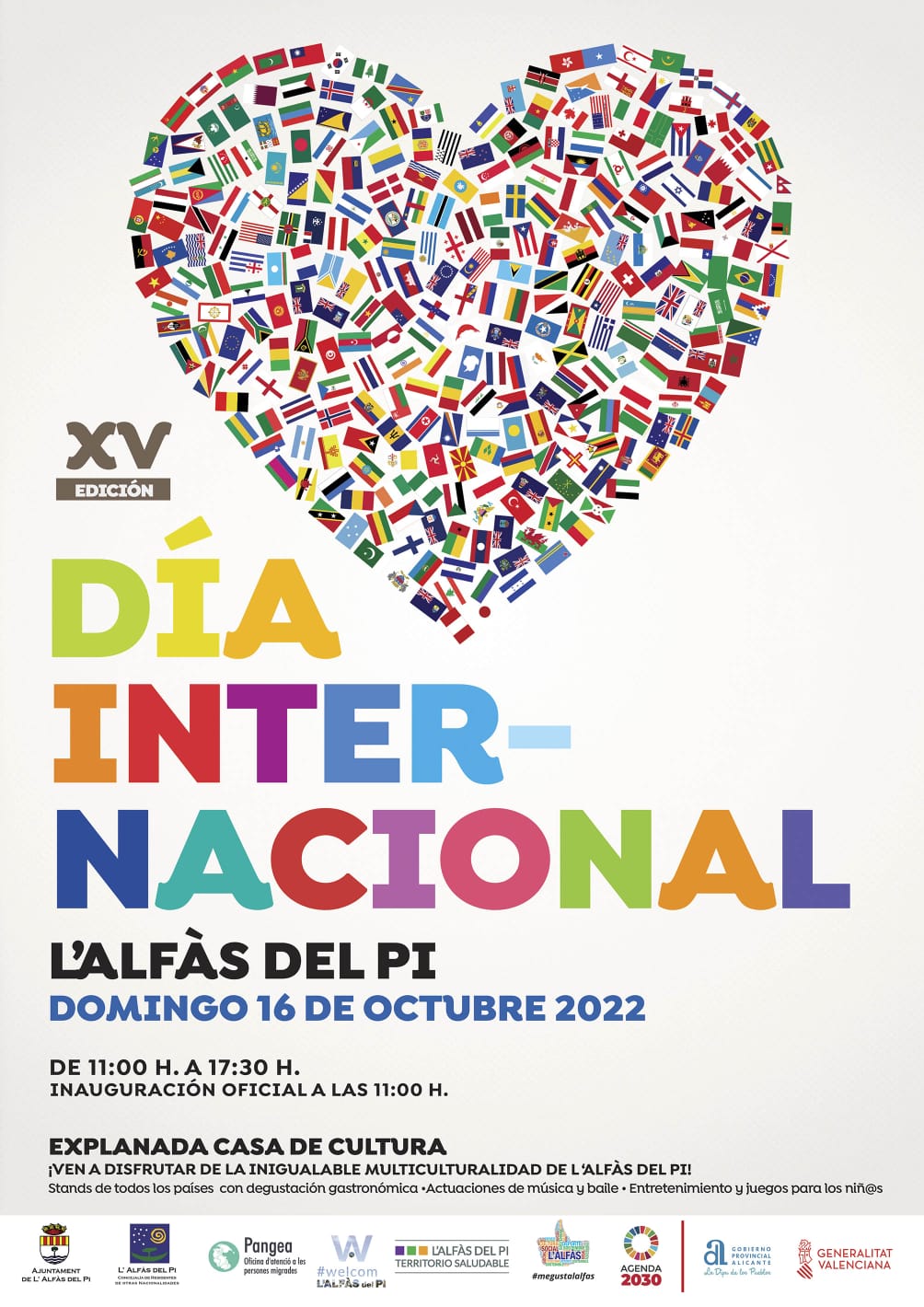 El domingo 16 de octubre, la explanada de la Casa de Cultura acogerá la celebración del décimo quinto Día Internacional de l’Alfàs del Pi. Un evento con el que se pretende fomentar la convivencia y la integración de personas de distintas nacionalidades.